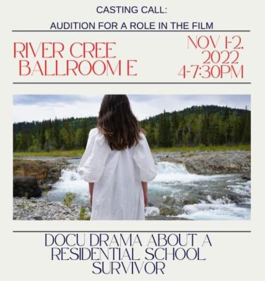 Casting Call – Film Role Casting Call Film Audition River Cree Ballroom Nov 1-2 from 4:00-7:30 PM Female and Male 5-30 years old. […]